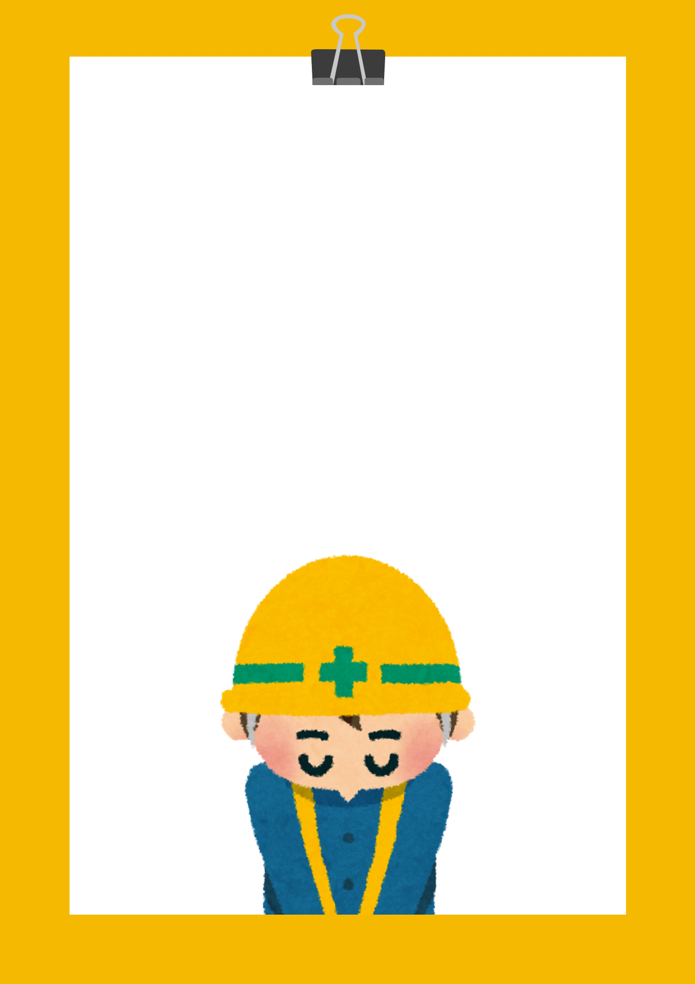 • シンプル 黄色 イラスト 工事中のお知らせ チラシ 縦