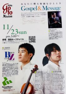 ゲストをお招きして、ヴァイオリンとピアノによるステキな演奏と聖書からのわかりやすいメッセージをお届けします。ぜひ、お気軽にお越しください。