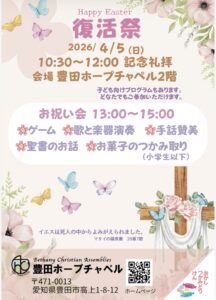 子ども向けプログラムもあります。イエス・キリストの復活を記念した特別な礼拝です。どなた様も歓迎いたします😊